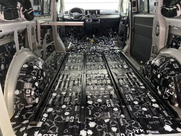 Odhlučnenie podlahy, podbehov + montáž autorádia a cúvacej kamery VW Transporter