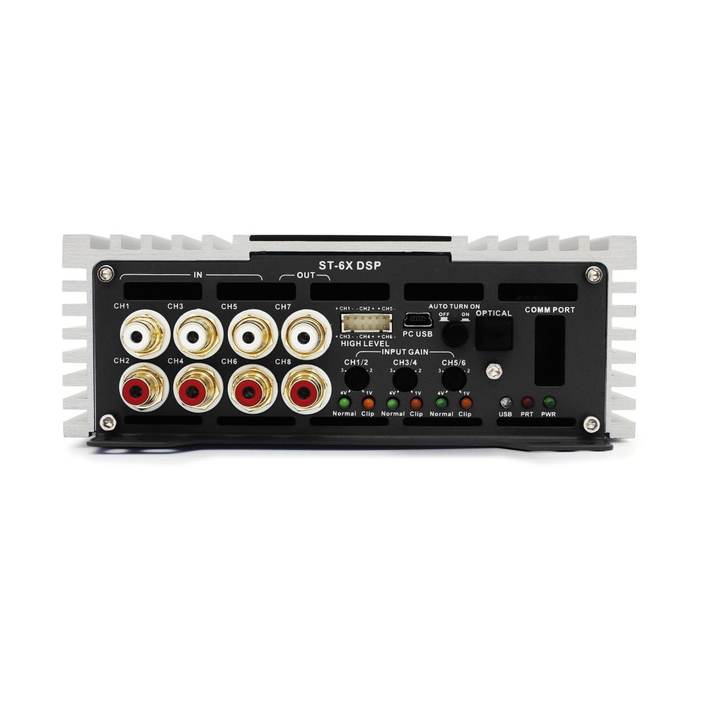 - 6kanálový zosilňovač triedy AB s 8kanálovým DSP procesorom.